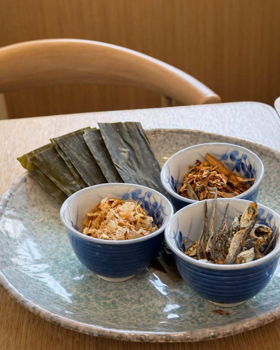 湯頭則是完全自家熬煮,使用昆布、乾沙丁魚、柴魚片等天然素材,柴魚來源來自 福島與京都,每天熬煮超過 8 小時。湯頭清澈、香氣乾淨,層次很深,卻一點也不厚重。