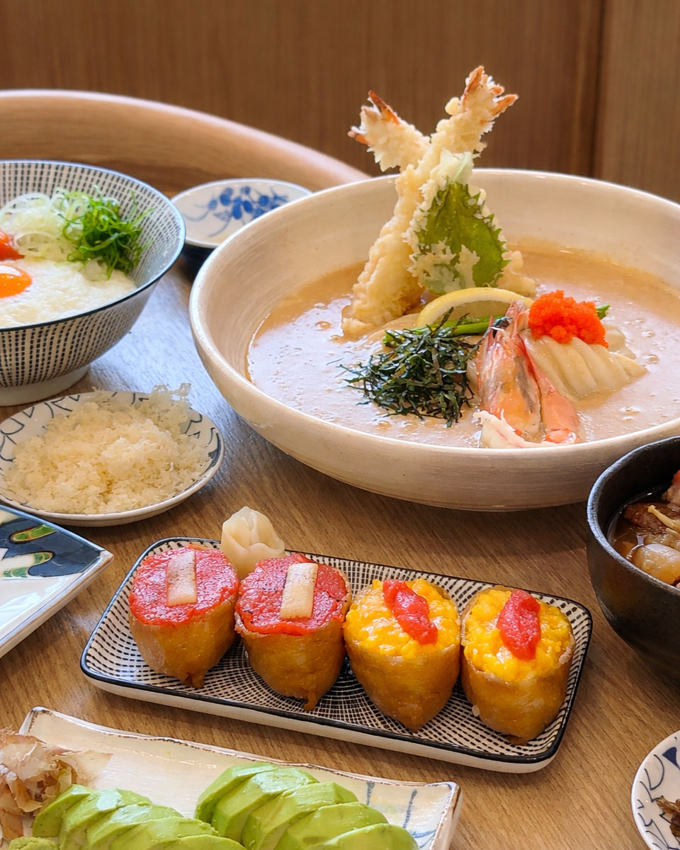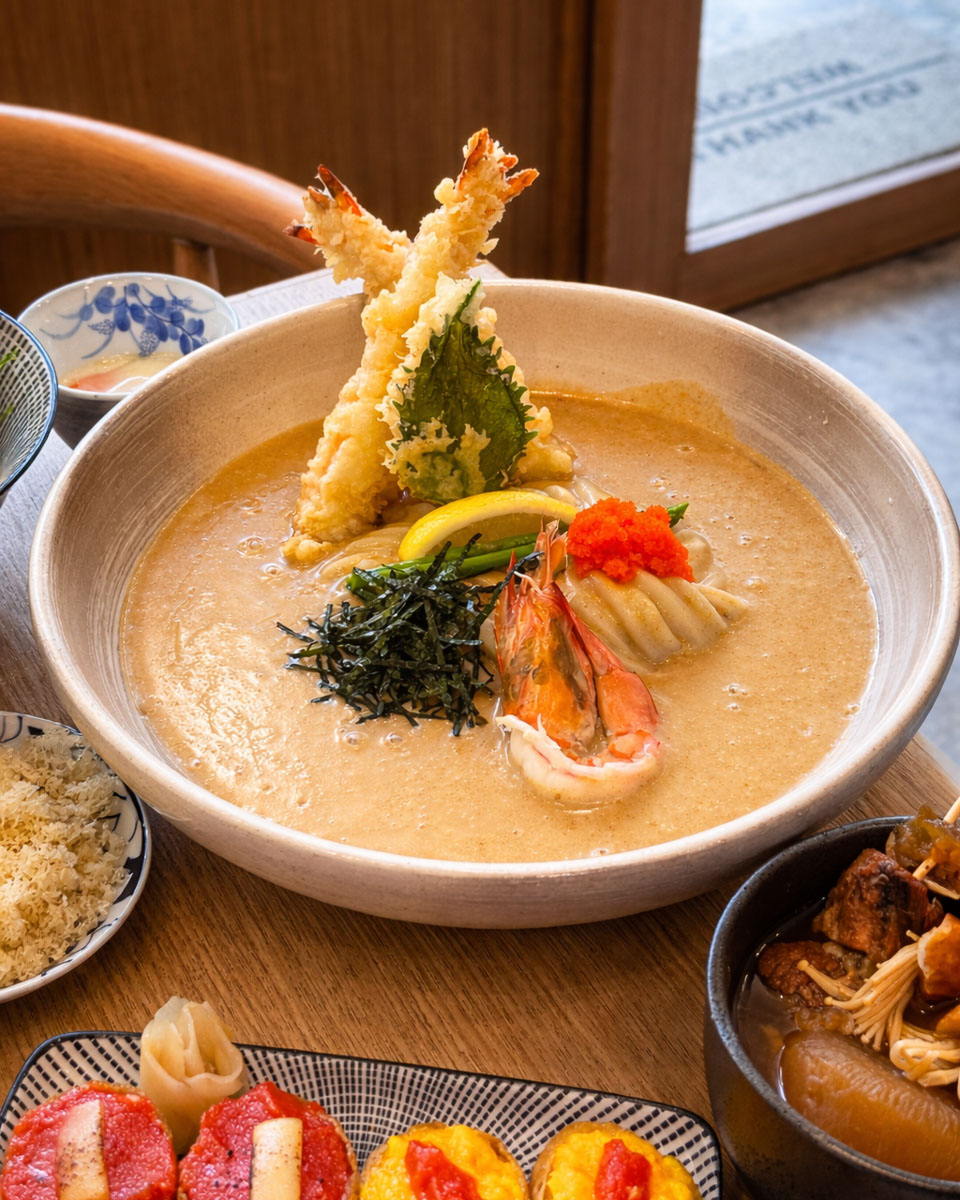 菜單上除了經典日式烏龍麵,也能找到像是 擔擔烏龍麵、蝦奶油烏龍麵這類新口味,不論你偏傳統還是想嘗試變化,都能找到適合的選擇。