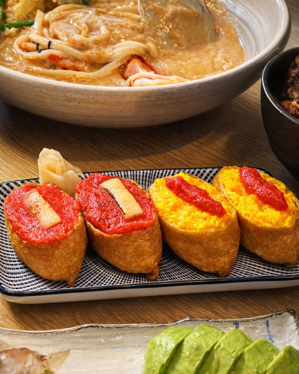 提到日本,豆皮壽司絕對是榜上有名,而這兩款一定要點。豆皮的甜、明太子的微辣、起司的濃郁搭在一起非常合理。蛋的版本則多了一層溫潤的香氣,吃完會忍不住想再來一份。