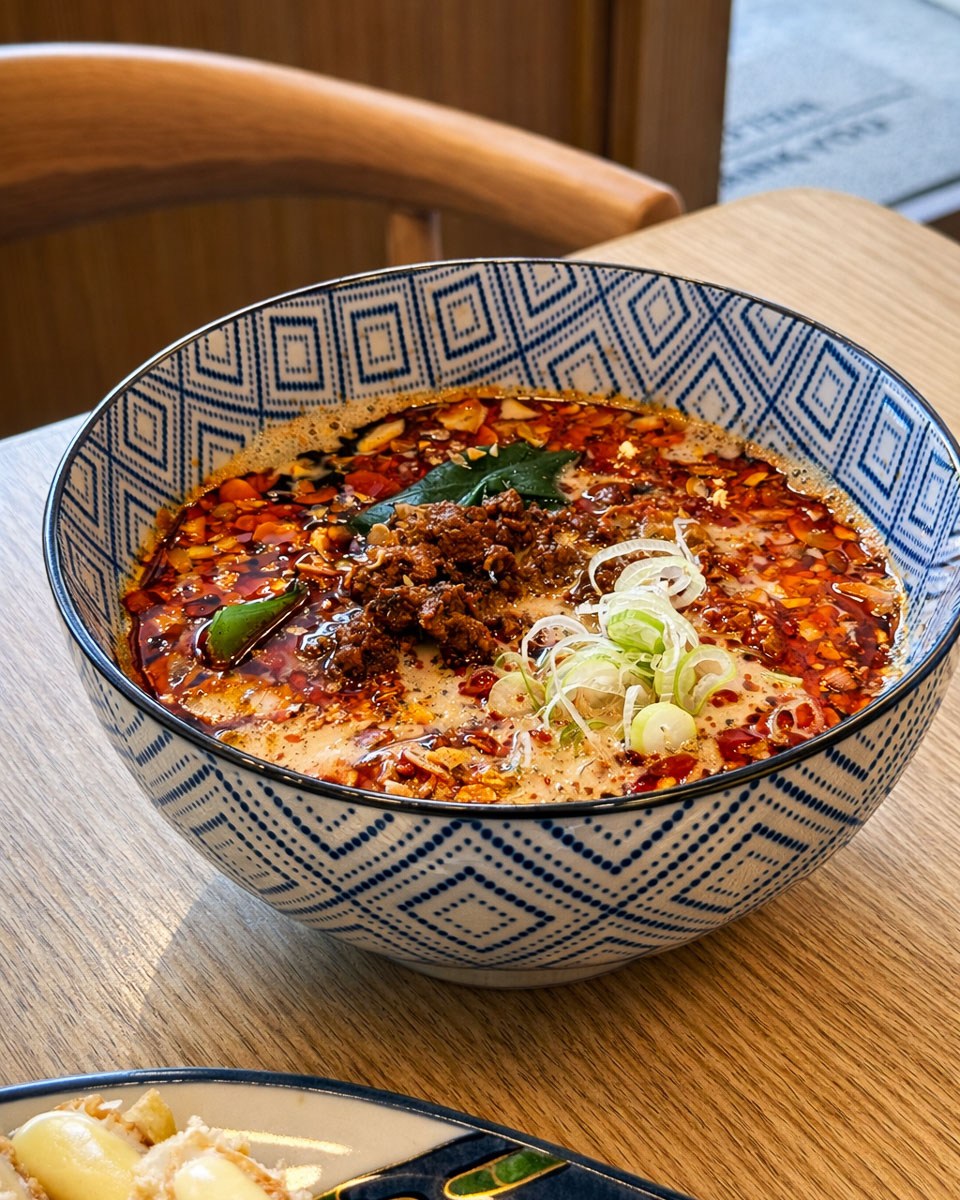 如果你吃過擔擔麵,這道就是烏龍麵版本。芝麻香濃卻不刺激,辣度溫和、順口。對台灣或華人來說很親切,但又保有日式感。