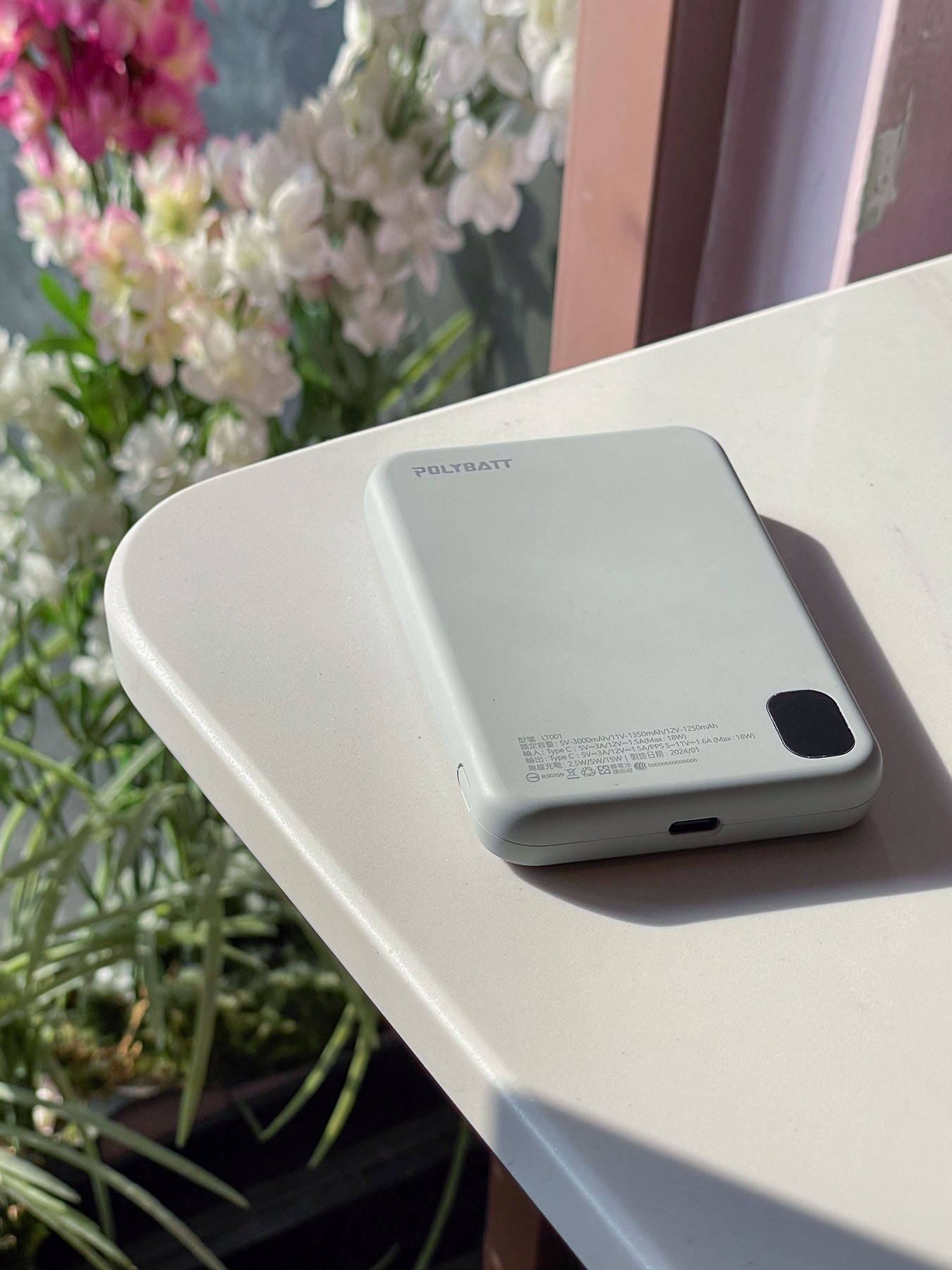 POLYBATT的行動電源好美~很喜歡他圓潤的外觀,拿起來手感、觸感都好好!共有五種顏色,我這款是岩灰,淺灰帶有一點點綠。