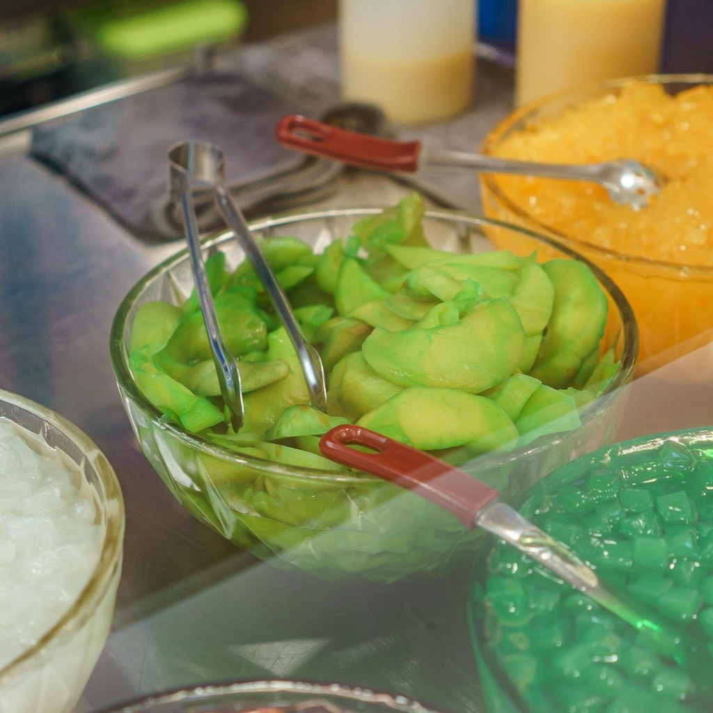 他們配料高達50種選擇,連一些不常在冰店看見的蜜地瓜、情人果等都有