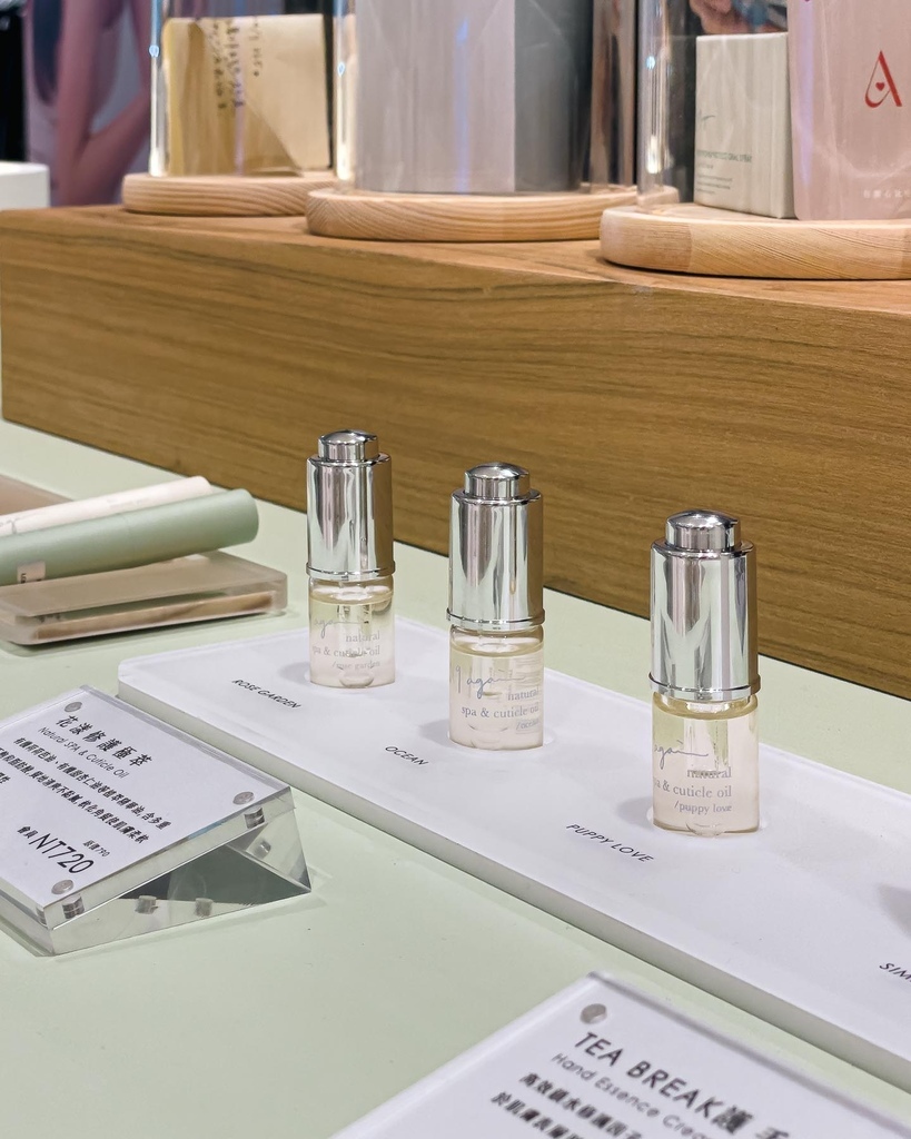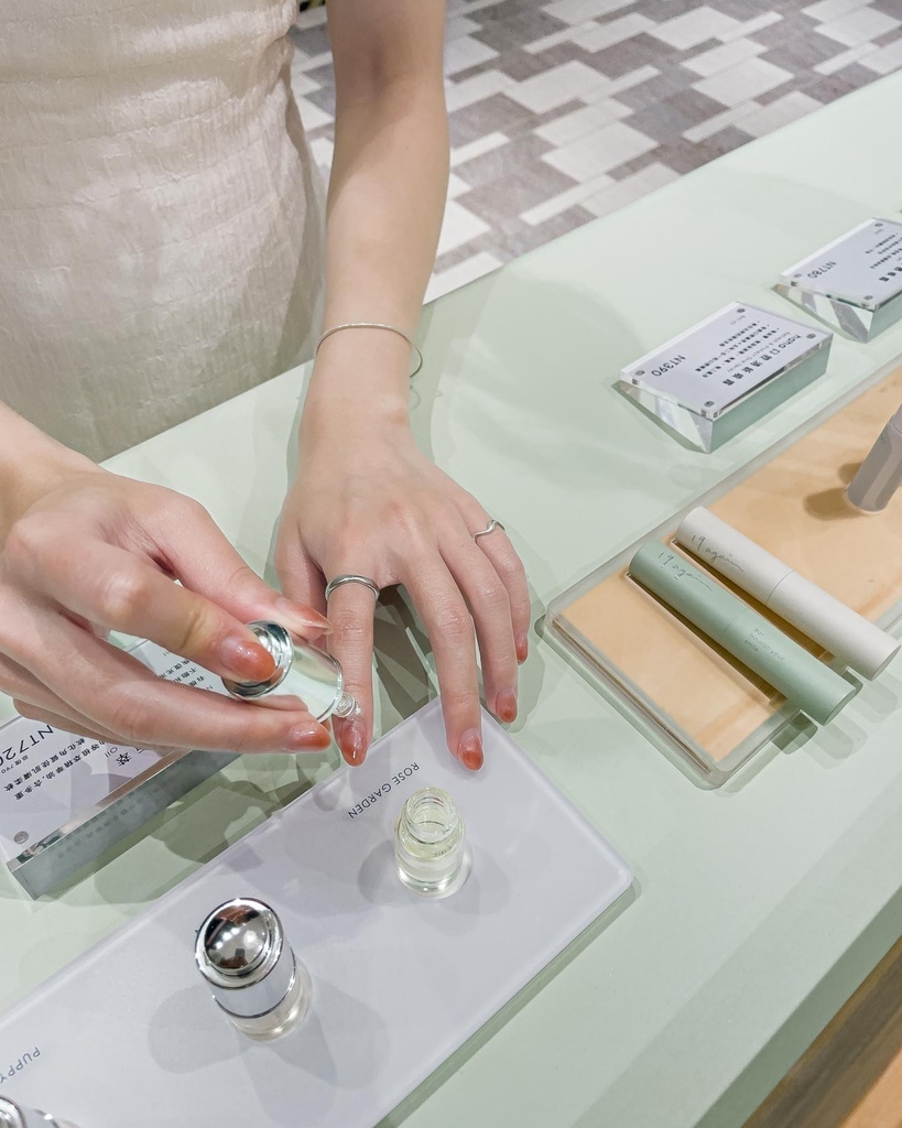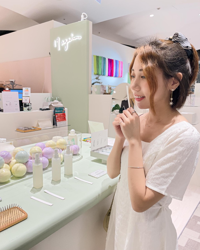 有一小區塊體驗區,可以坐下來休息、試用產品,超美的小角落也很適合來拍照