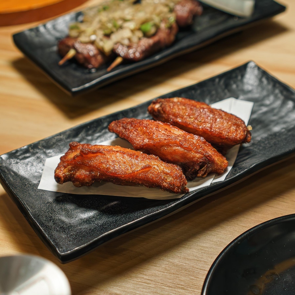 雞翅表面烤的鹹香帶脆口,肉不乾柴、保有肉汁,很是嫩口