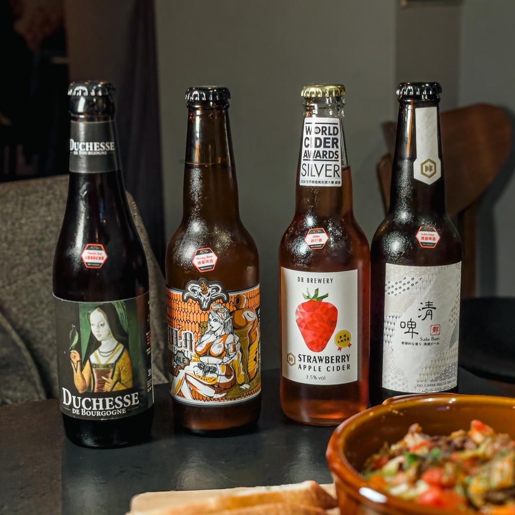 Duchesse De Bourgogne 女皇爵黑啤酒、Tsais Gula Honey Wheat Ale 不朽精釀 暴食 蜂蜜白啤酒、DB Brewery Strawberry 德意 草莓氣泡酒、清啤