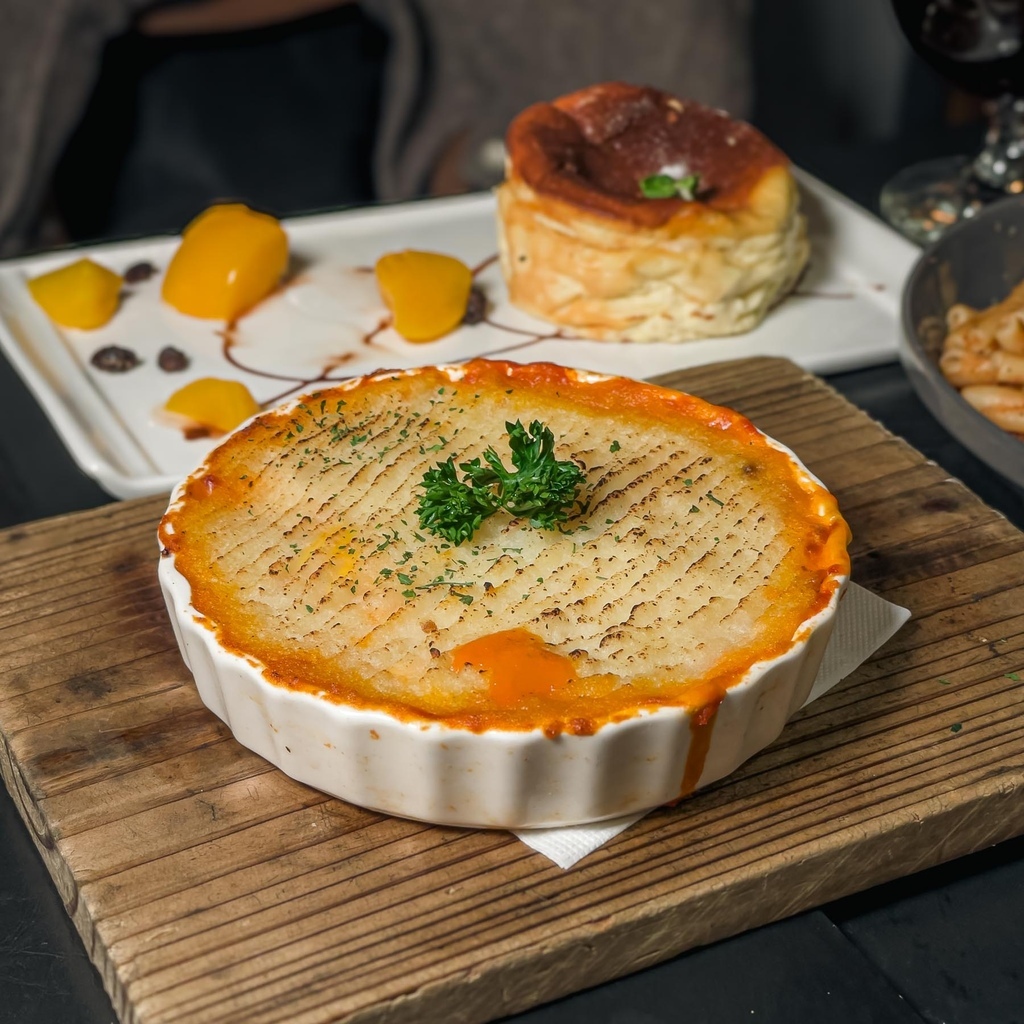 牧羊人派是非常經典的英格蘭餡餅,茄汁香氣浸滿碎肉,搭配綿密的馬鈴薯泥