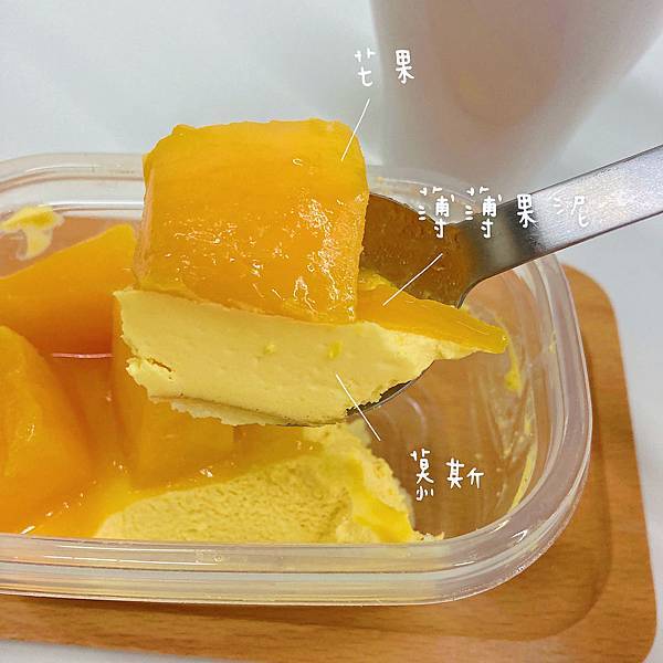 我第一口是愛文芒果果粒配上果泥和慕斯,整個芒果味非常濃厚!