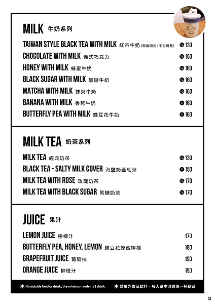 *備註:每人最低消費一杯飲料(不包含糕點),假日用餐時間限時2小時
