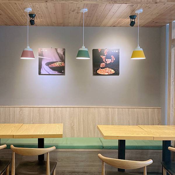 這塊座位區也是氣氛很好,牆上食物照、馬卡龍色吊燈