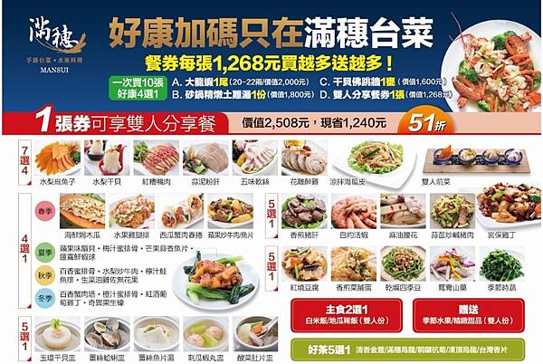 這次我們是點雙人分享餐,用餐券的話只要1268元(含服務費)