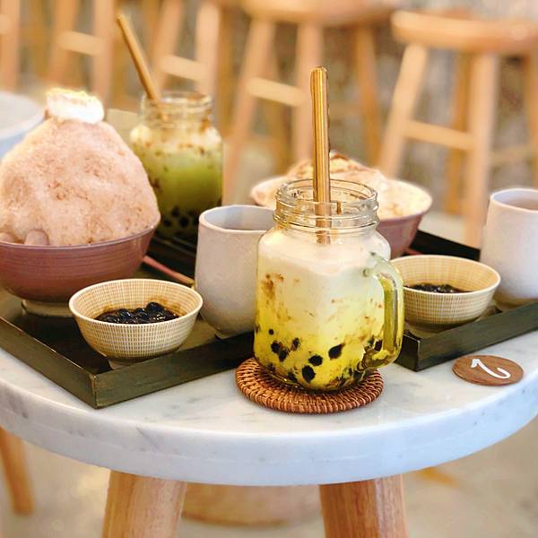他的冰品旁邊都會附上一碗來時的經典「黑糖珍珠」