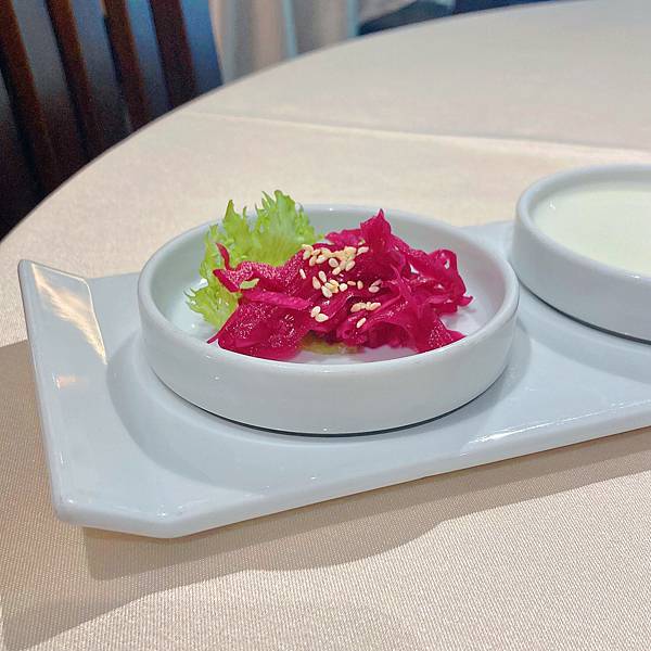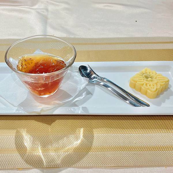 還附手作起司酥皮派餃,最後則是果香風味醋和茶香桂花凍配雪藏綠豆糕