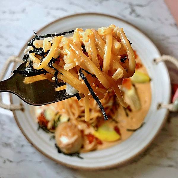 [看介紹]粉紅鮭魚卵干貝義大利麵 NT.400 不客觀推薦 ★★★★✩