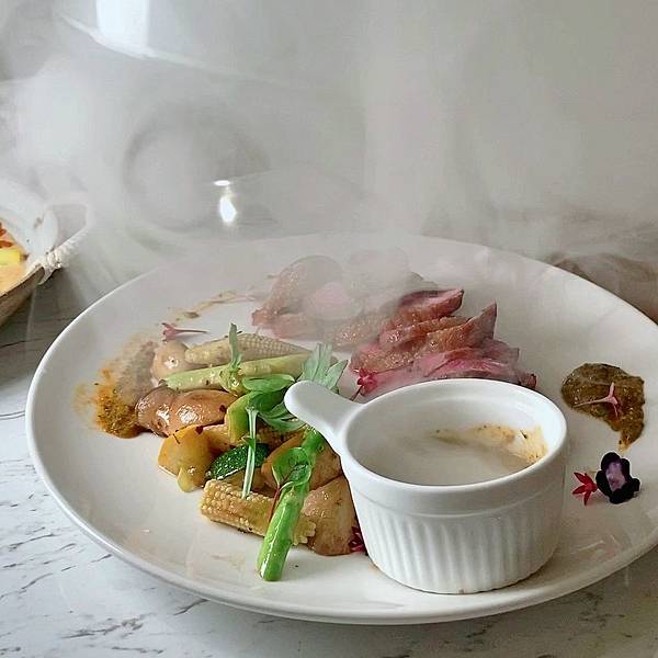 上菜時,一掀蓋立刻煙霧瀰漫,視覺效果頗好