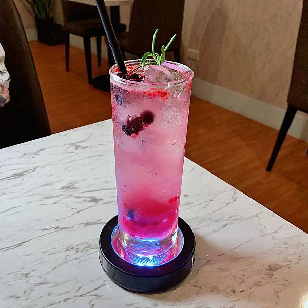 這杯是少女的夢幻酸甜飲料,酸類的莓果和氣泡很搭,不喝酒的女孩們可以點這杯