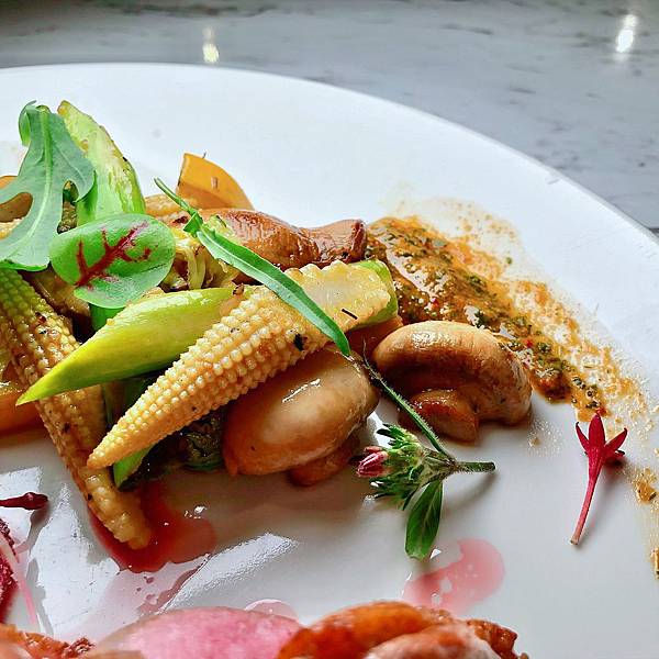 義大利麵比我想像中的大份,而且用料豐富,裡面有蘑菇、櫛瓜外,還有玉米筍
