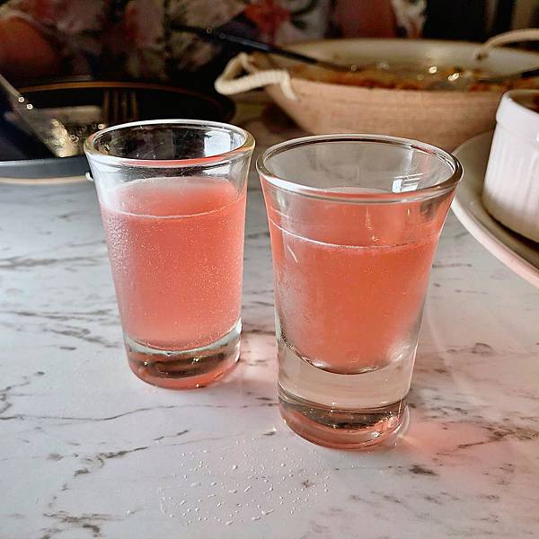 主餐結束後,店家會遞上餐後酒。酒精濃度高、甜度也高但很順口