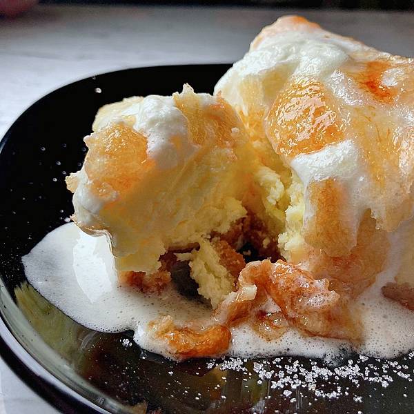 上方不只焦糖,還有撒些許的玫瑰鹽,吃起來鹹鹹甜甜的