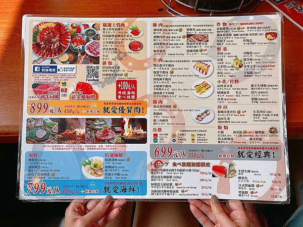 左邊下方799吃到飽有海鮮與經典餐,左上的899則是上等肉類配上經典餐