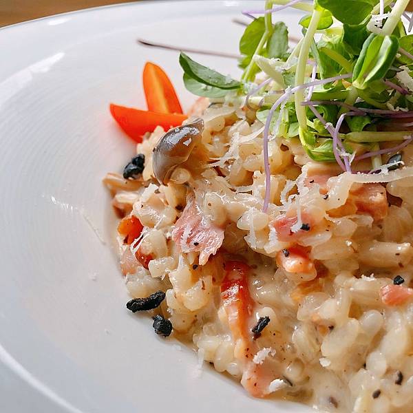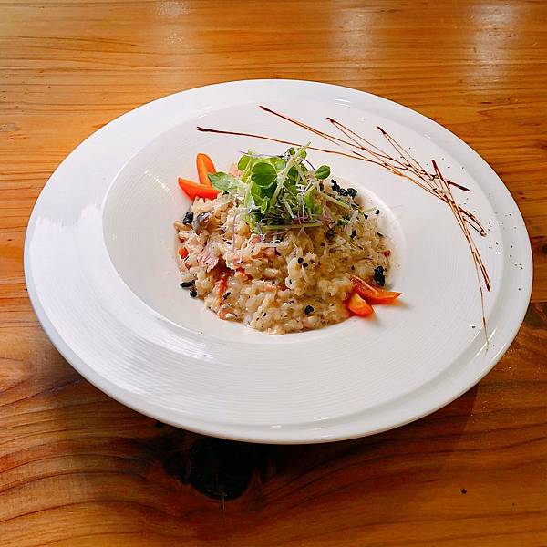 燉飯有分稍硬的米芯和比較符合台灣口味的軟口感,這份是粒粒分明且屬於軟黏,較符合大多數人的喜好