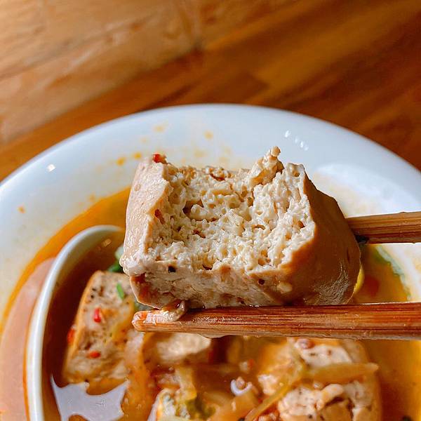 本身不油炸,以紅燒方式呈現,所有膨漲的孔隙都被滷汁填滿,咬一口立即爆汁