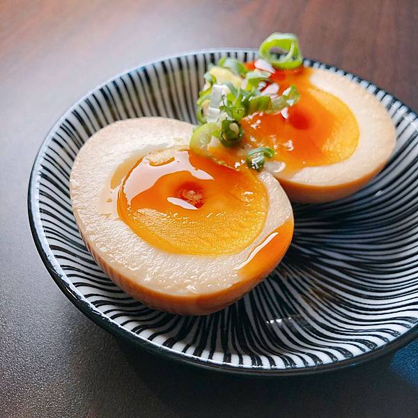 對半的金色蛋黃,似流沙般傾淌而出,一樣加入了甜風味的醬油和青蔥