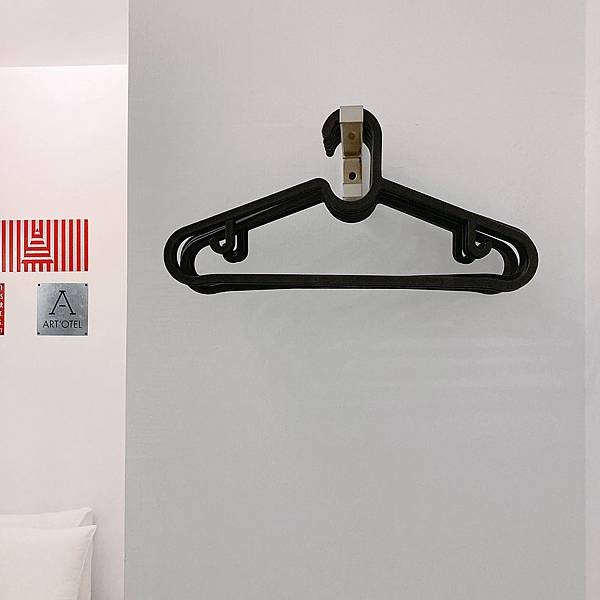 房間內雖配有多個黑色衣架,沒有衣櫃、掛勾就只有這一個