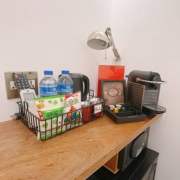 還有提供兩顆膠囊咖啡與奶精可以自己泡咖啡
