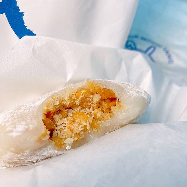 最不同的是裡面包裹粒粒花生,很喜歡軟黏的麻糬皮,裡頭卻是硬脆的花生的雙重口感