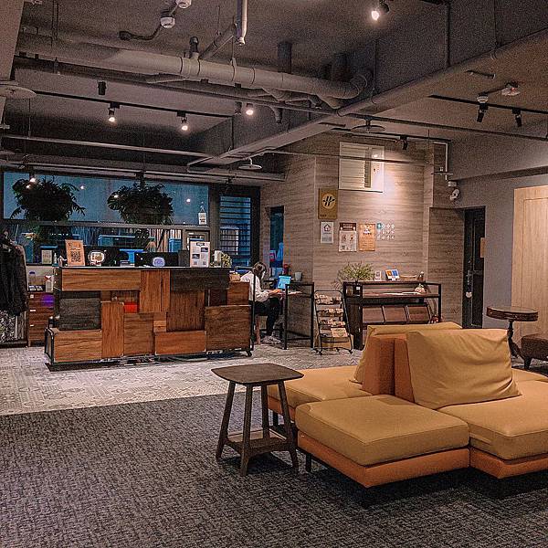 大廳很有氣氛,深灰色調搭上黃橘色的沙發