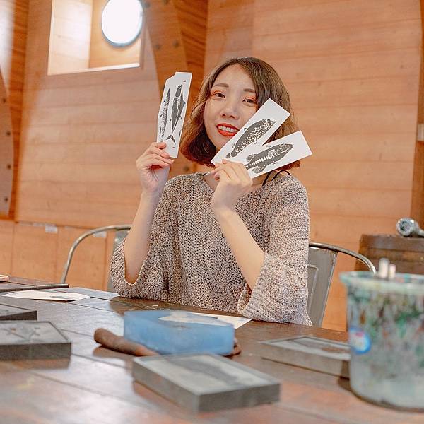 有六種不同的魚可以拓印,墨水太慢乾可以到舵輪旁用吹風機吹乾