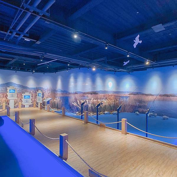 首先會穿過一個深藍色隧道,導覽員會解說釣魚的發展
