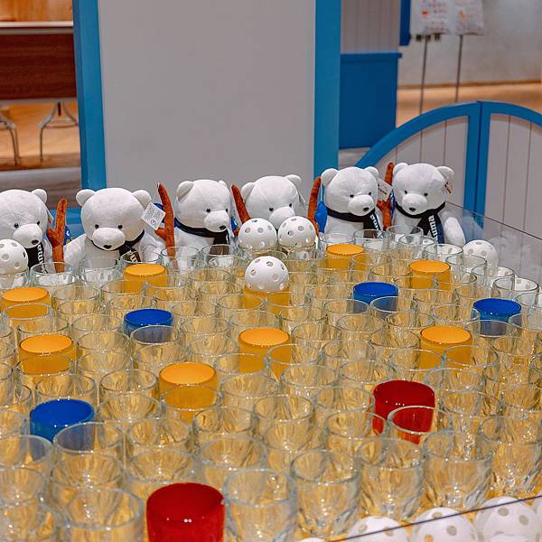 這個「ㄎㄧㄤ杯ㄎㄧㄤ」目標是要將球投進有顏色的杯中,不同顏色可獲得不同大小的娃娃