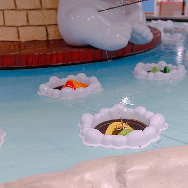玩法和小時候的釣魚遊戲一樣,整個水池會向固定方向旋轉