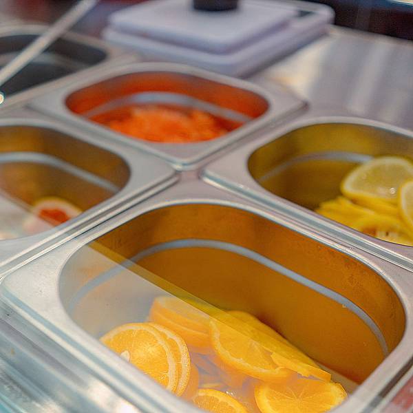 他們將配料直接放於櫃檯旁,讓大家可以看到現做飲料的過程