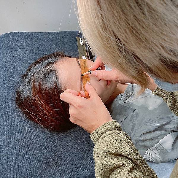 紋繡前會先定位、繡出來的眉型才會準確,每個步驟都很仔細