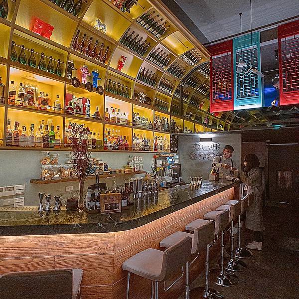 一踏入店內,曲形拱狀、發光的酒櫃在黑暗中映入眼簾
