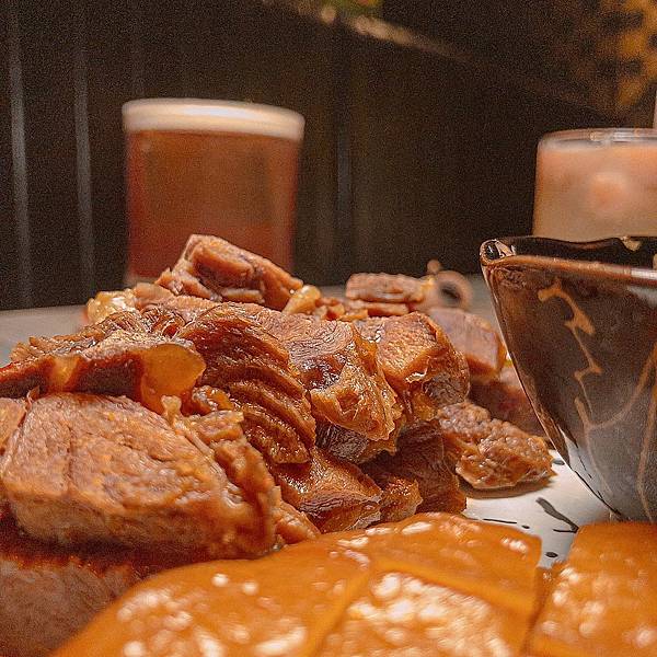 在酒吧中吃到台式道地滷味拼盤很特別!有四個滷味小菜,牛肉、豆乾、甜不辣、海帶