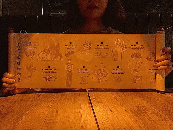 菜單復刻中國的捲軸,酒單圖案也刻畫細緻的古風,超愛
