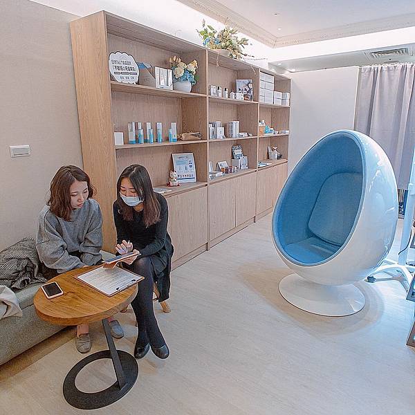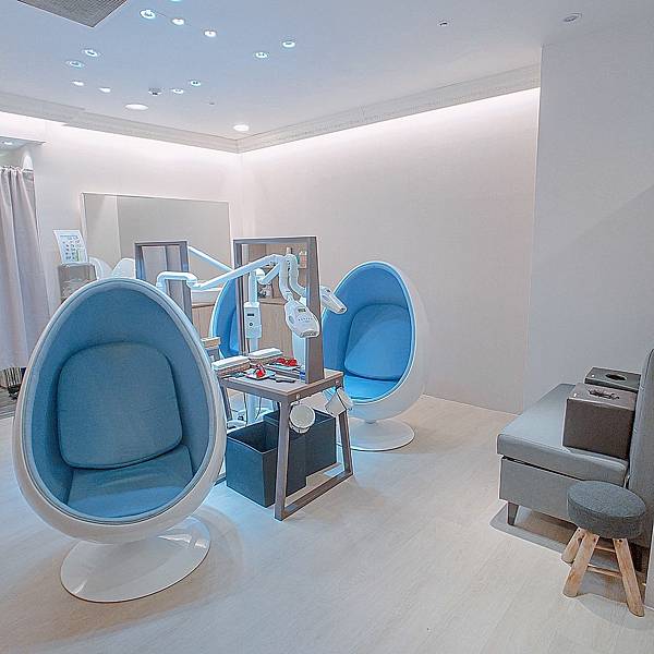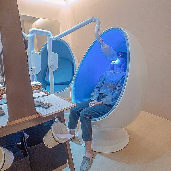 店內粉藍色蛋形的座位很可愛,約莫有四組座位,需要先事前預約喔!