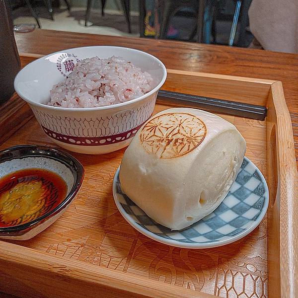 軟軟糯糯的紫米飯,香氣豐沛,白饅頭帶點甜味、口感紮實