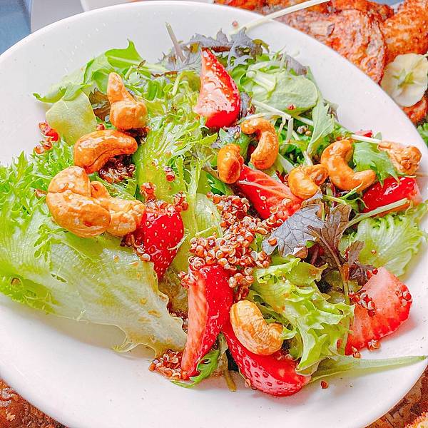 一小碗的沙拉,裡頭卻含草莓、堅果
