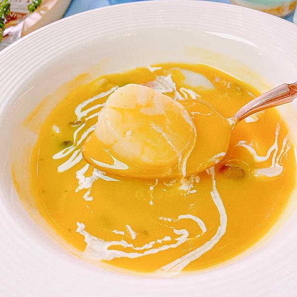 豐郁的南瓜湯更帶出海鮮的甜味