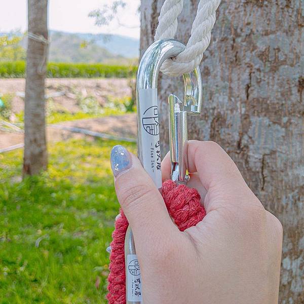 找到掛有白繩的大樹,將吊床掛鉤穩穩的鉤入即可