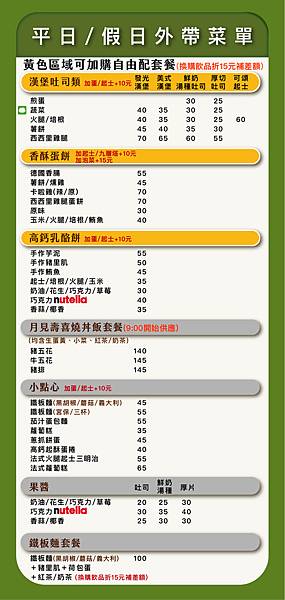 平假日的外帶菜單
