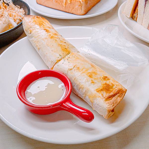 蛋餅餅皮煎的酥香,濕潤不乾柴富有嚼感