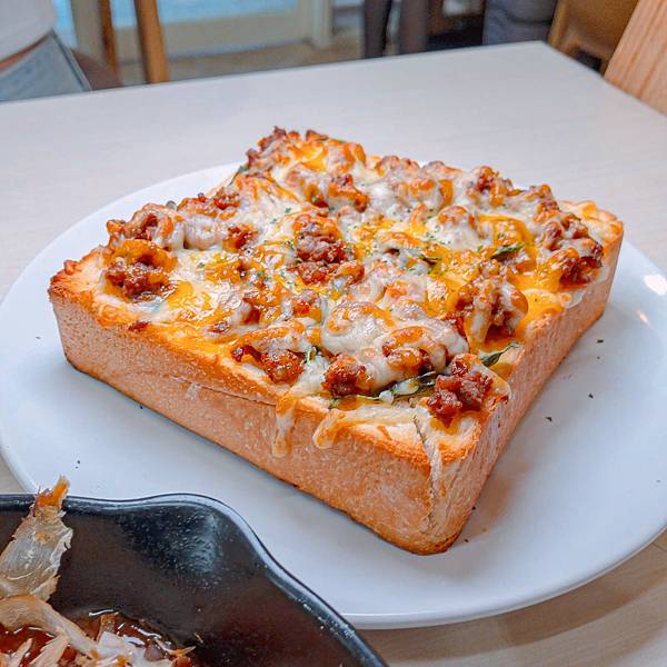 這份是我最喜歡的餐點!麵包淡淡奶香襯托上方微辣的打拋豬