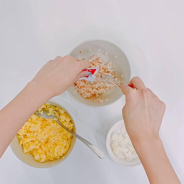 蛋一定要熟,攪拌完若還有點溼潤,可以用鍋子炒一下