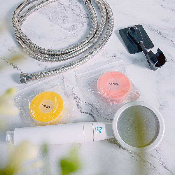 還附兩個香氛、萬向掛座、200cm水管