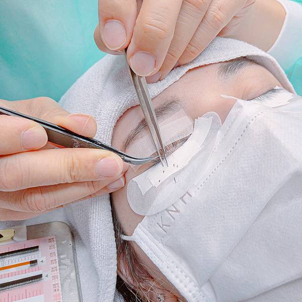 美容師會將睫毛分層接,確認睫毛生長狀況再開始黏